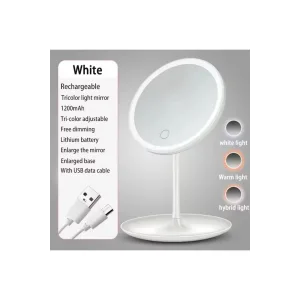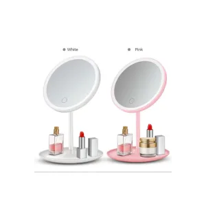 Led Işıklı Dokunmatik Makyaj Aynası Pembe Beyaz 3 Kademeli Işık Ayarlı 360° Döner Başlıklı Masaüstü Ayna