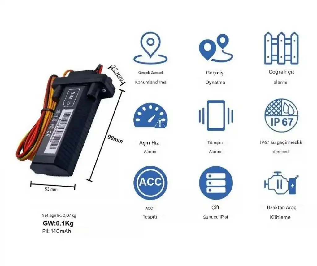 Araç, tır, minibüs, otobüs, tekne, motor ve motosikletler için uyumlu 12V / 24V GPS araç takip sistemi ile aracınızı anlık olarak takip edebilirsiniz. Uzaktan blokaj özelliği sayesinde gerekli durumlarda aracı kontrol altına alma imkanı sunar.