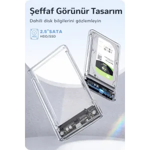 2.5 '' Harici Sabit Sürücü Muhafazası, 6Gbps USB C 3.1 Gen 2 - SATA III Aletsiz Şeffaf Harici Sabit Sürücü Kılıfı 7mm/UASP ile 9,5 mm 2,5 inç SSD HDD WD Toshiba Samsung PS4 PS5 ile uyumlu