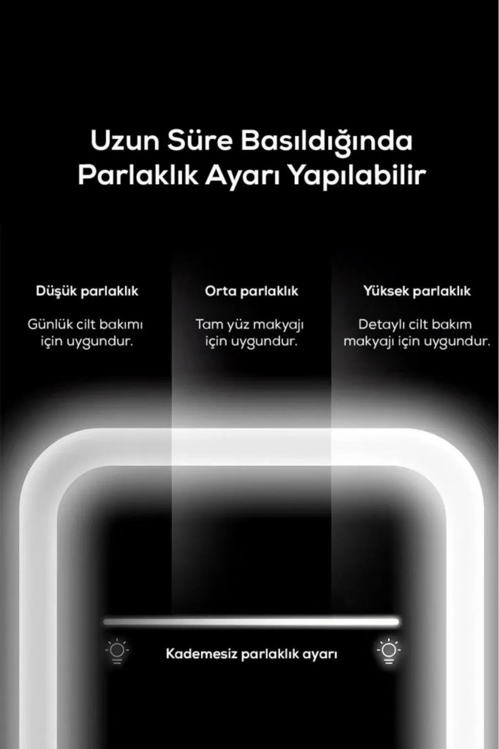 • Yüksek ışık modu ile detaylı makyaj ve bakım