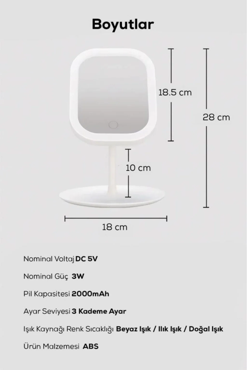 Sağlam tabanı sayesinde masa üzerinde sabit durur. Kompakt yapısı sayesinde fazla yer kaplamaz. Makyaj masası, yatak odası, banyo veya kişisel bakım köşeleri için ideal kullanım sunar.