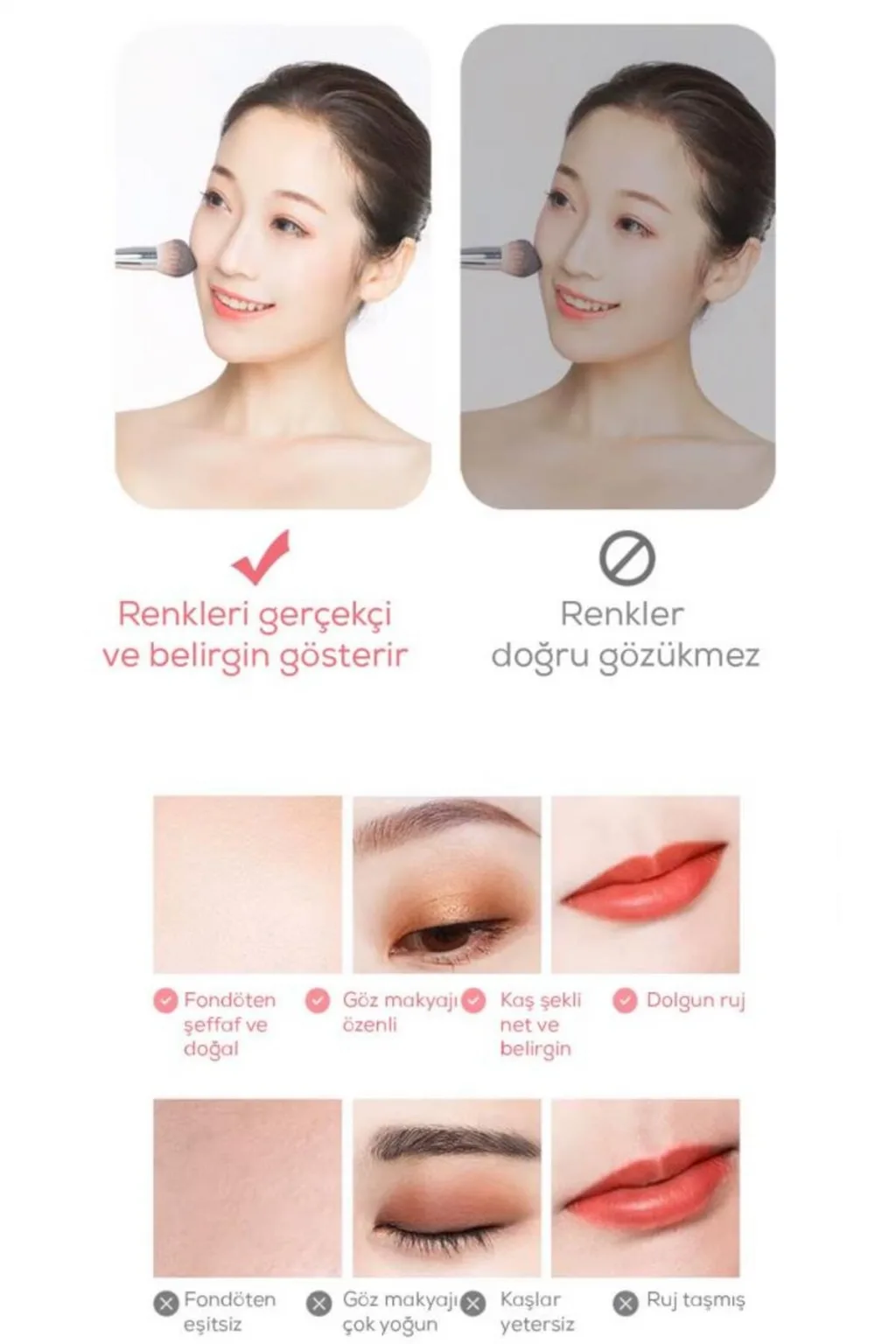 • Gün ışığı modu ile doğal makyaj uygulaması