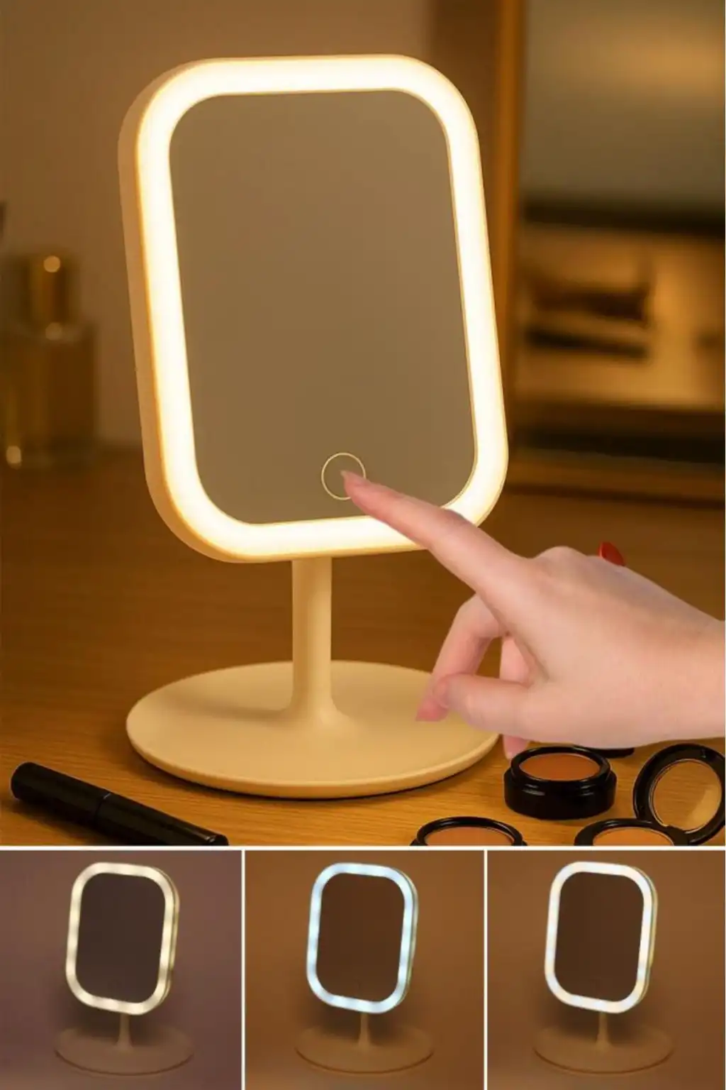 ✨ Led Işıklı Dokunmatik Makyaj Aynası Pembe & Beyaz