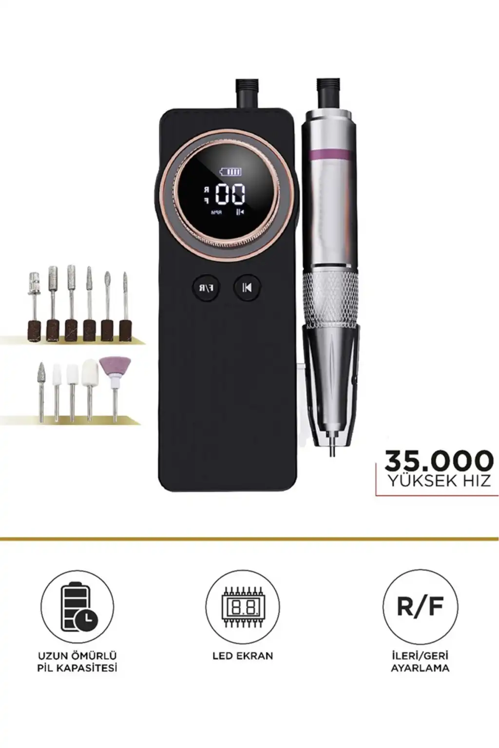 Profesyonel Nail Drill Tırnak Törpü Makinesi – 35.000 RPM | Dijital LED Ekran | Şarjlı | Süper Sessiz