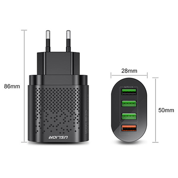 USLİON 4 Port 48W QC 3.0 Hızlı Şarj USB Adaptör, ev, ofis ve güç kaynağı bulunan her ortamda aynı anda birden fazla cihazı hızlı ve güvenli şekilde şarj etmenizi sağlar. 4 USB portu sayesinde cep telefonu, tablet, Bluetooth kulaklık, powerbank ve USB girişli tüm cihazlarınız için pratik bir çözüm sunar.